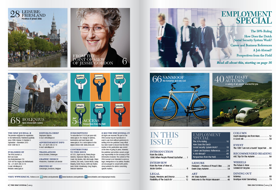 Designing the visual concept and taking care of quarterly production of a magazine directed at expats in the Netherlands.